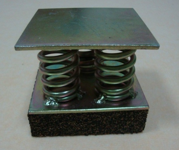 地面减振器:功效: 能减低音响(歌舞厅、的士高的超劲低频)及撞击声的声压级,除了可以对震动声源进行近控制外,还可以在振动传播的通路上采取隔绝音响超低频震动及撞击声措施。主要是通过面层、垫层、吊顶进行隔低频震动传送及撞击声的处理。规格:100*100*81mm (25+3+50+3mm)应用场所:酒吧 、KTV 、卡拉OK、夜总会等娱乐场所的隔音、减振。
