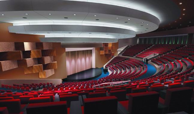 电影院装修与音乐厅、剧场等不同,电影院是把录制在胶片或磁带上的声信号还原。由于录音信号已经经过加工处理,不需要电影院对声音过多的影响。 电影院按放映技术,可分为:普通电影院、宽银幕立体声电影院、全景电影院、700MM宽胶片和环幕电影院等几类。 根据声音还原时的独立声道数,电影院可分为单声道、杜比(Dolby)4声道、6声带立体声及其多声道电影院。 目前我国新建或改造的电影院大多需具备放映杜比35MM四声道光立体声电影的条件,即为通常所说的宽银幕立体声电影院。下面主要介绍这种影院的音质设计。这种立体声电影院有4个独立的声道、即左、中、右主扬声器布置在银幕后面,环绕声扬声器有很多,布置在中央后部侧墙及后墙。超低音扬声器亦可设置在银幕后面,由于其对声像定位影响不大,对其位置要求不严。 电影院要求短混响和平直的混响时间频率特性。因此,电影院院容积应尽可能地小。容积大,就要增加控制混响时间所需的投资。一般建议电影院每座容积为3.5-5.5 /座。电影院容积与银幕大小有关,银幕又宽又高,则大厅高度增加,第一排观众至银幕的距离增大,每座容积就大,因此,实际工程中,可在满足使用条件情况下尽可能取小容积。 专业立体声电影院不宜设楼座,以使电影录音在观众厅内还原成一个完整的声平面。电影院观众听长度不宜过长,太长会造成后排观众席听到的声音与看到的图像不同步。因此,一般要求银幕至最后排观众不超过36M最大也不应超过40M。目前,专业立体声影院为了有更好的视听条件,总是尽可能用较大的银幕,这样,观众厅前区有较大区域不能布置观众席。同时,观众厅长度又有限制。因此,电影院容座规模就不会很大。 电影院观众厅平面可采用长方形或斜角较小的扇形。对于长方形平面,观众厅(包括舞台)的长宽比宜为1.5左右。电影院可以不设舞台或设小舞台。观众听地面应有的足够的起坡,需经过计算确定各排地面标高,满足视线无遮挡即可。电影还音系统扬声器声功率都较大,无需利用近次反射来增大响度。 立体声影院观众厅两侧墙布置有环绕声扬声器,很容易在两平行墙之间发生多重回声,这是立体声影院的一个特点。为避免多重回声,可在侧墙做扩散或做倾斜侧墙面,使侧墙反射声射向观众席。侧墙扩散体形式应满足建筑艺术要求, 立体声影院的混响时间及吸声材料选用 由于在电影录音时,已有一定混响效果,因此,电影院观众听要求较短的混响时间值,容积在3000-6000 的电影院观众厅满场中频500-1000Hz混响时间建议值可取 ,其余频率与500Hz混响时间的比值宜为: 125Hz 1.0-1.3 250 Hz 1.0-1.1 2000-4000 Hz 0.8-1.0 即混响时间频率特性基本平直,允许低频稍长,高频稍短。当容积很小或是很大的时候,混响时间可适当降低或延长。 立体声影院混响时间短,所需吸声材料或结构数量较多,在选用和布置时应注意以下几个方面: (1) 为有良好的声像定位,主扬声器附近墙、顶应做吸声处理; (2) 为防止后墙产生回声,应做强吸声处理; (3) 座椅宜用吸声量大的沙发布面软椅,座椅底板可穿孔以增大低频吸声; (4) 除上述吸声量外,还需增加的吸声材料可均匀地布置在侧墙和顶棚上; 由于吸声量大,应用多种吸声材料组合,以达到理想的吸声频率特性。 其它电影院音质设计 不论立体声电影还是放映设备,还是建筑声学条件都可满足兼放普通电影的要求。对于纯放映普通电影的电影院,观众听声学要求相对要低一些。普通电影院,满场500-1000 Hz最佳混响时间为( )。混响时间频率特性同立体声影院。由于普通电影只有一组主扬声器,位于银幕后,没有环绕声扬声器,所以不必像立体声影院那样要防止平行侧面墙之间的多重回声。其它立体声影院音质设计原则和方法都是和普通电影院。 放映70MM宽胶片影片的电影院,通常有6个独立的声道,其中5路主声道位于银幕后面,1路环绕声分别布置在左、右侧墙和后墙,这种影院要求更短的混响时间为0.5-0.7S,低频125 Hz可提升1.10倍。影院的银幕更大,因此,影院的高度、容积也更大。相对四声道立体声影院,为控制混响时间需要用更多的吸声材料或结构。 全景影院也有6个独立声道,平面通常选用圆形或椭圆形,环幕影院要求短的混响时间和平直的频率特性。由于圆形具有声聚作用,为避免声聚焦所做的吸声面,往往以达到控制混响时间所需的吸声量 |